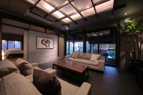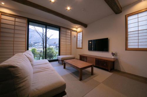 El Yufuin Bettei Itsuki ofrece un baño de aguas termales, conexión WiFi gratuita y habitaciones modernas de lujo con balcón, baño termal privado y zona de estar de estilo japonés.