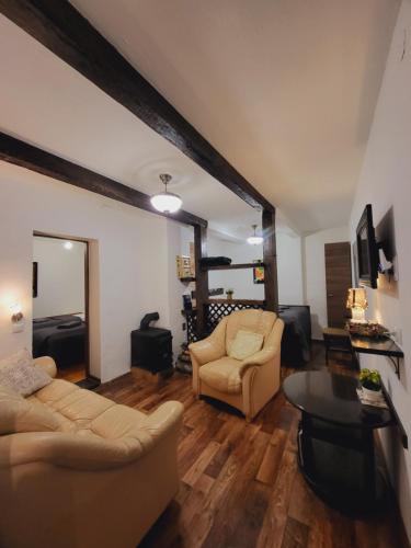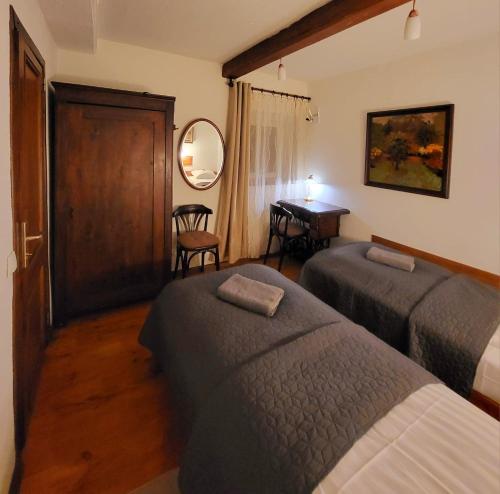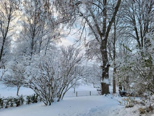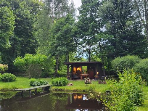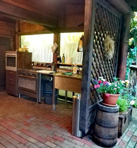 The farm stay with a terrace and garden views features 2 bedrooms, a living room, a flat-screen TV, an equipped kitchen with an oven and a microwave, and 1 bathroom with a shower. The parquet floors, fireplace and peaceful vibe add to the ambience of the room. The property has an outdoor dining area.