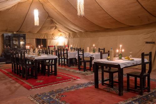 Camp luxury Merzouga está en Merzouga y dispone de vistas a la montaña, jardín, terraza, restaurante y acceso a pie de pista. El camping ofrece wifi y parking privado, ambos gratis.