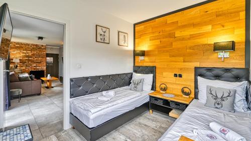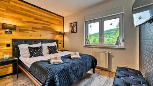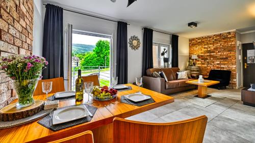 Apartament Winnica Izerska - 5D Apartamenty está a 20 km de Estación de tren de Szklarska Poręba Górna y a 20 km de Dinopark, y ofrece wifi gratis y terraza. El alojamiento, que está a 17 km de Curva de la Muerte, dispone de bicicletas gratis y parking privado gratis.
