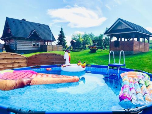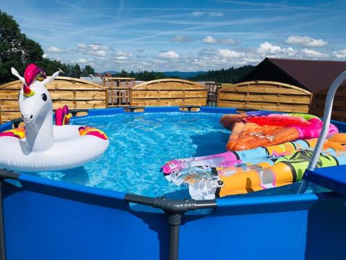 Domek na Wierchu Bukowiny, que cuenta con piscina de temporada al aire libre, jardín y terraza, ofrece alojamiento en Załuczne con wifi gratis y vistas a la montaña. Este alojamiento ofrece piscina privada y parking privado gratis.