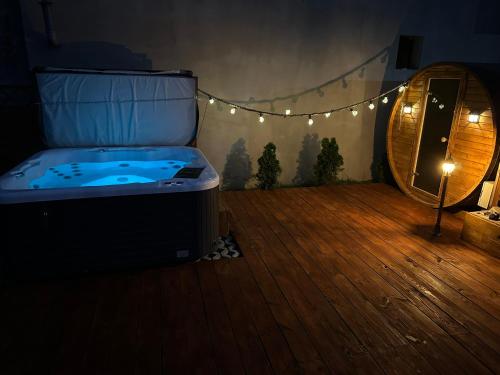 La casa o chalet tiene un centro de spa y bienestar equipado con sauna y bañera de hidromasaje. Hay piscina al aire libre y terraza en este alojamiento, y en la zona se puede practicar senderismo y ciclismo.