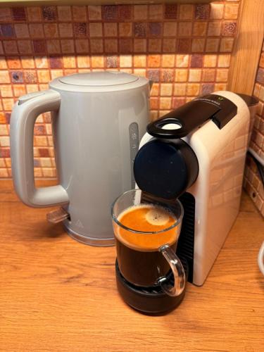 Esta casa o chalet con aire acondicionado consta de 2 dormitorios, una sala de estar, una zona de cocina totalmente equipada con nevera y cafetera, y 1 baño con ducha y bañera de hidromasaje. Hay toallas y ropa de cama en la casa o chalet.