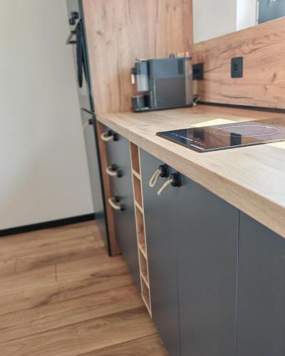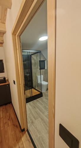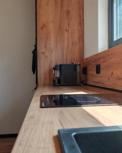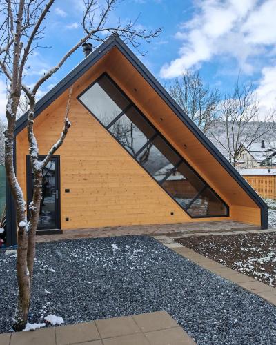 Este chalet de montaña tiene 1 dormitorio, cocina con nevera y horno, TV de pantalla plana, zona de estar y 1 baño con bañera o ducha.