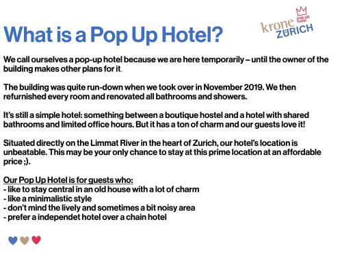 Información básica - Pop Up Hotel Krone Zürich