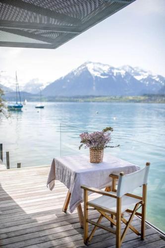 Award-winning cottage on lake Thun- New, que cuenta con vistas al mar, dispone de alojamiento con terraza y balcón a unos 31 km de Torre del Reloj de Berna. El alojamiento, que se encuentra a 30 km de Bärengraben, ofrece jardín y parking privado gratis.