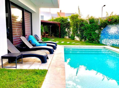 Villa Privée d'Artiste à Hammamet, que se encuentra en Yasmine, ofrece alojamiento con piscina privada, vistas a la piscina y balcón. El alojamiento, que está a 10 min a pie de Playa de Yasmine Hammamet, dispone de terraza y parking privado gratis.