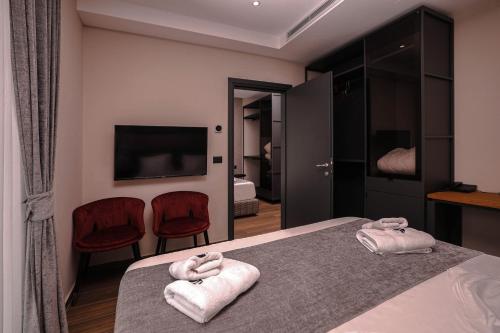 Situated in Shëngjin, 200 metres from Ylberi Beach, Frojd Kune Resort & Beach Hotel features accommodation with a garden, free private parking, a private beach area and a shared lounge. 42 km from Rozafa Castle Shkodra and 43 km from Lake Skadar, the property offers a terrace and a bar. The accommodation provides room service, a 24-hour front desk and currency exchange for guests.