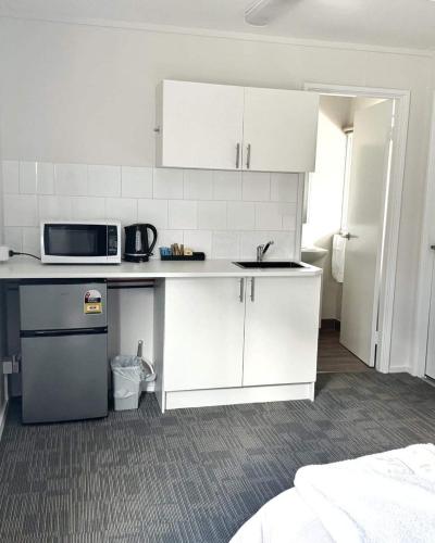 Some rooms include a kitchenette with a fridge, a microwave and a stovetop.