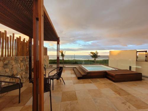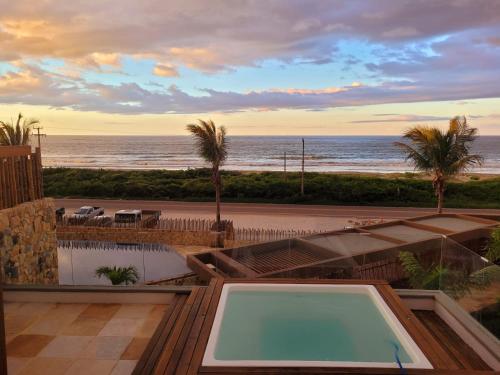 Located in Trairi, Casa em Condomínio Flecheiras provides accommodation with a rooftop pool, a balcony and sea views. This beachfront property offers access to a terrace, free private parking and free WiFi. The property is non-smoking and is set a few steps from Flecheiras Beach.