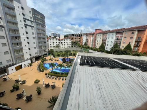 Located just 26 km from Acqua Park Di Roma, Flat 405 - Condomínio Veredas do Rio Quente - Diferenciado com ar na sala e no quarto offers accommodation in Rio Quente with access to a fitness centre, an indoor pool, as well as a lift. This property offers access to a balcony, squash on the squash court, free private parking and free WiFi. The apartment provides an outdoor swimming pool with a water slide, as well as a sauna and a 24-hour front desk.