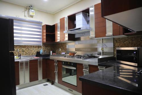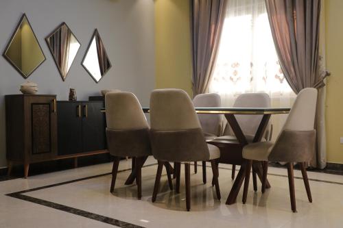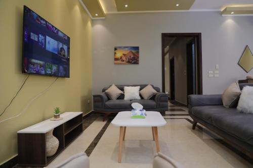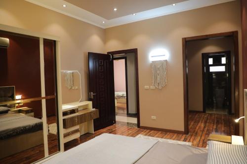 Located within the New Cairo City district in Cairo, Luxurious apartment - New Cairo has air conditioning, a patio, and city views. This apartment provides free private parking, a 24-hour front desk and free WiFi. The apartment features a hot tub and a lift.