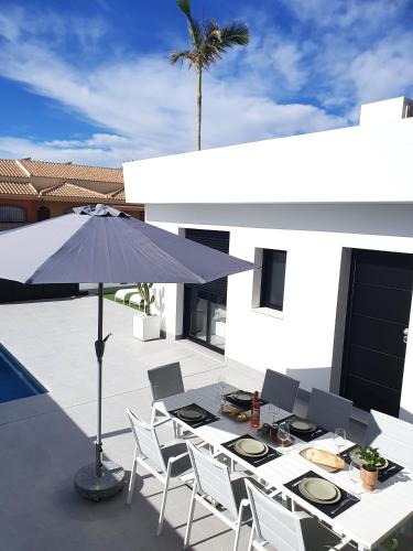 Featuring air-conditioned accommodation with a private pool, garden view and a balcony, Casa Mazzita, een knusse nieuwbouw is located in Torre-Pacheco. The property is set 42 km from Las Colinas Golf Course, 49 km from La Manga Club and 14 km from Mar Menor Golf Resort. Providing free WiFi throughout the property, the non-smoking holiday home features a solarium.