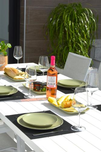 The holiday home comes with 2 bedrooms, 2 bathrooms, bed linen, towels, a flat-screen TV with streaming services, a dining area, a fully equipped kitchen, and a terrace with pool views. Guests can enjoy a meal on an outdoor dining area while overlooking the quiet street views. For added privacy, the accommodation features a private entrance.