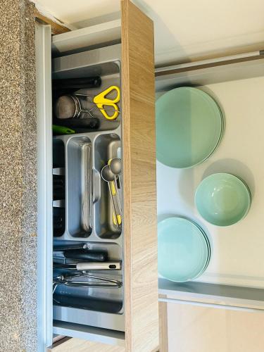 The apartment is composed of 1 bedroom, a fully equipped kitchen, and 2 bathrooms. A flat-screen TV is available. Housekeeping service is also available.