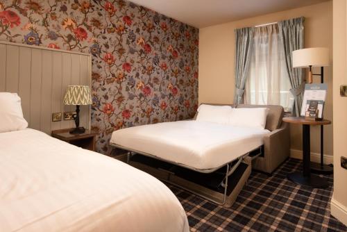 The recently refurbished restaurant serves a varied seasonal menu in a rustic setting, with exposed beams and flagstone floors. The views of the Esk Valley can be enjoyed from the garden room complete with its own log burner.