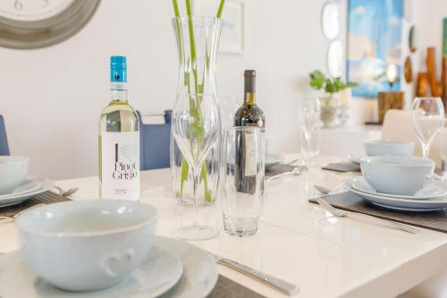 The spacious holiday home has 3 bedrooms, a TV, a fully equipped kitchen with a dishwasher and an oven, a washing machine, and 2 bathrooms with a walk-in shower.