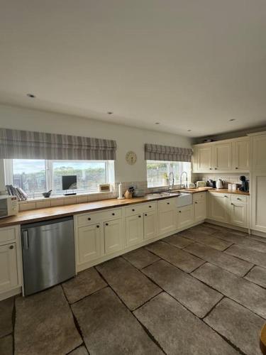 The holiday home is fitted with 5 bedrooms, 3 bathrooms, bed linen, towels, a flat-screen TV, a dining area, a fully equipped kitchen, and a terrace with lake views. Guests can take in the ambience of the surroundings from an outdoor dining area or keep themselves warm by the fireplace on colder days. The property offers garden views.