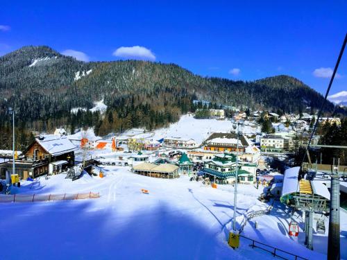 The spacious apartment comes with 3 bedrooms, 2 bathrooms, bed linen, towels, a flat-screen TV with satellite channels, a dining area, a fully equipped kitchen, and a terrace with mountain views. Dry cleaning service is also available.