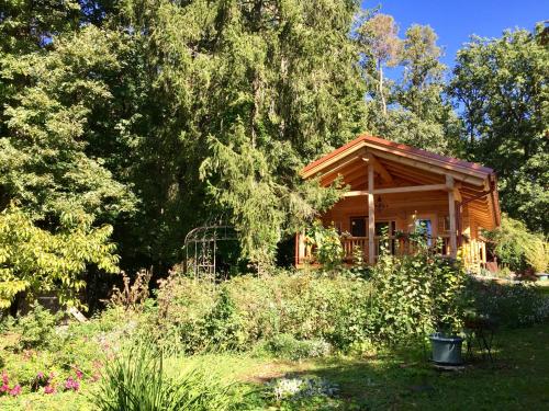 The chalet provides guests with a terrace, garden views, a seating area, a flat-screen TV, a fully equipped kitchen with a microwave and a toaster, and a private bathroom with shower and a hair dryer. A fridge, a stovetop and kitchenware are also available, as well as a coffee machine and a kettle. Additional in-room amenities include wine or champagne, fruits and chocolates or cookies.