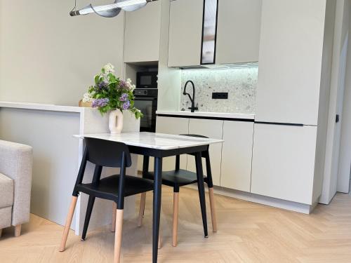 The air-conditioned apartment consists of 1 bedroom, a living room, a fully equipped kitchen with a dishwasher and a kettle, and 1 bathroom with a bath and slippers. Towels and bed linen are provided in the apartment. This apartment is allergy-free and non-smoking.