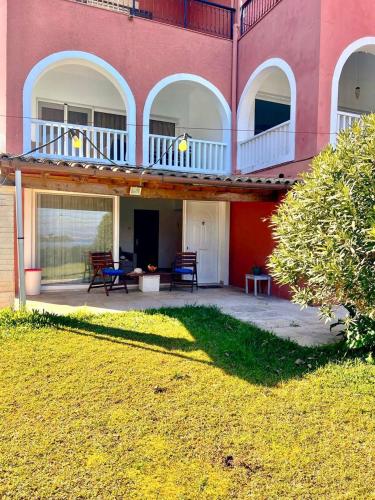 Situated in Gouvia, 600 metres from Gouvia Beach and 2.6 km from Kontokali Beach, SV Apartment with sea view offers a garden and air conditioning. This beachfront property offers access to free WiFi and free private parking. Outdoor seating is also available at the apartment.