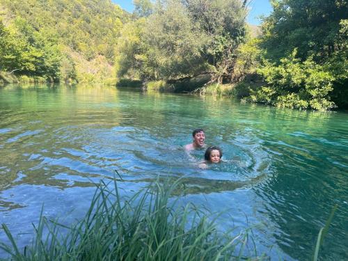 The apartment provides guests with a balcony, mountain views, a seating area, a flat-screen TV, a fully equipped kitchen with an oven and a fridge, and a private bathroom with shower and a hair dryer. A patio with an outdoor dining area and river views is offered in all units. At the apartment complex, each unit is fitted with bed linen and towels.
