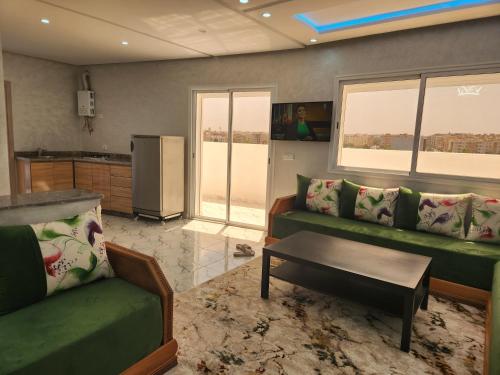 Résidence Rose Marie 24 lot 92A is situated in El Harhoura, 23 km from Royal Golf Dar Es Salam, 23 km from The National Library of the Kingdom of Morocco, and 25 km from Kasbah of the Udayas. The property has mountain and city views, and is 12 km from Mohammed VI Convention Centre. The apartment features family rooms.
