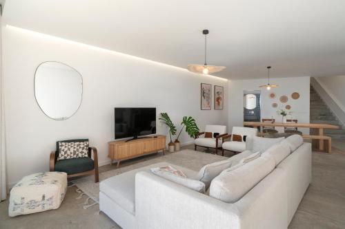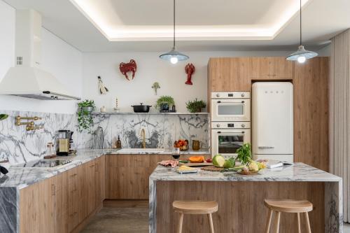 The spacious villa features 4 bedrooms, 6 bathrooms, bed linen, towels, a flat-screen TV with cable channels, a dining area, a fully equipped kitchen, and a terrace with sea views. A private entrance leads guests into the villa, where they can enjoy some fruits. This villa is non-smoking and soundproof.