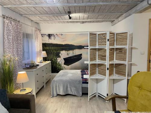 Gawramaszki - Agroturystyka - komfortowe pokoje z łazienkami i aneksami kuchennymi, a property with a garden, barbecue facilities and a shared lounge, is set in Węgorzewo, 45 km from Święta Lipka Sanctuary, 24 km from Indian Village, as well as 31 km from Boyen Fortress. Featuring a shared kitchen, this property also provides guests with an outdoor fireplace. The apartment offers garden views, a sun terrace, and free WiFi is available throughout the property.