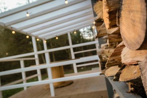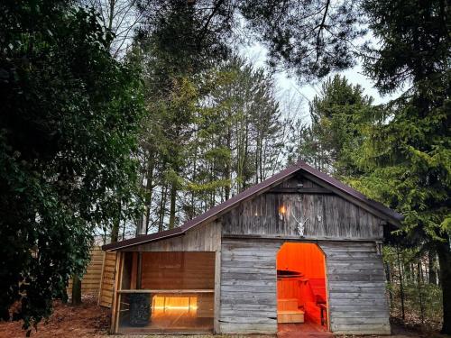 COZYWOOD Domki wypoczynkowe z balią i sauną na Kaszubach features a sauna and a hot tub, as well as air-conditioned accommodation in Pomlewo, 27 km from Gdansk Lipce. This property offers access to a terrace and free private parking. The holiday home has family rooms.