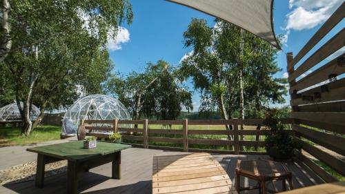 Guests at JURA GLAMP luksusowe całoroczne domki na wyłączność KOPUŁY IGLOO taras ogród can make the most of yoga classes offered in-house. Guests at the accommodation can enjoy cycling and hiking nearby, or make the most of the garden.