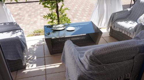 The villa with a terrace and garden views has 3 bedrooms, a living room, a flat-screen TV, an equipped kitchen with a dishwasher and an oven, and 1 bathroom with a walk-in shower. Towels and bed linen are available in the villa. The property has an outdoor dining area.