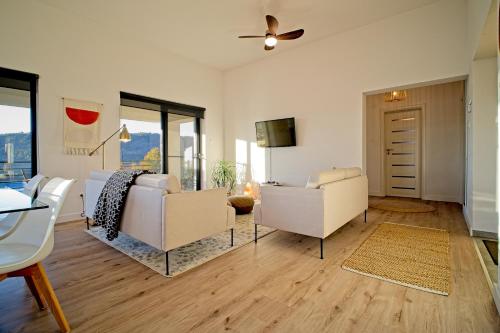 Featuring a game console, the holiday home has a fully equipped kitchen with a dishwasher, an oven and a microwave, a living room with a seating area and a dining area, 2 bedrooms, and 2 bathrooms with a bath and a shower. Towels and bed linen are provided in the holiday home. The property has an outdoor dining area.