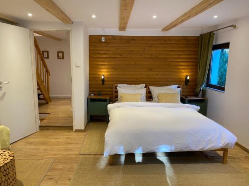 The spacious holiday home with a terrace and garden views features 2 bedrooms, a living room, a flat-screen TV, an equipped kitchen with a dishwasher and an oven, and 2 bathrooms with a walk-in shower. Towels and bed linen are featured in the holiday home. The property has an outdoor dining area.