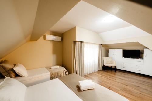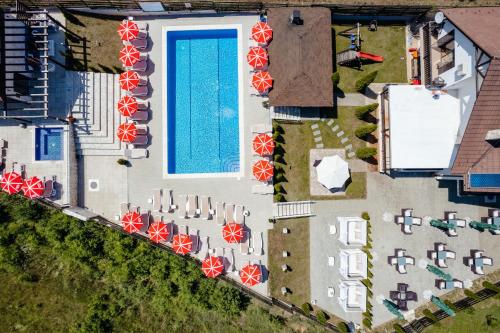 Boasting pool views, Pensiunea Perla Transilvaniei features accommodation with a garden, a bar and a shared lounge, around 41 km from Banffy Palace. Featuring free private parking, the 3-star guest house is 19 km from Turda Salt Mine. Guests can use the spa facilities and the steam room, or enjoy mountain views.