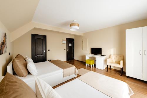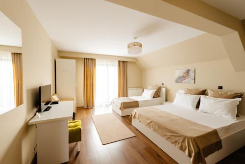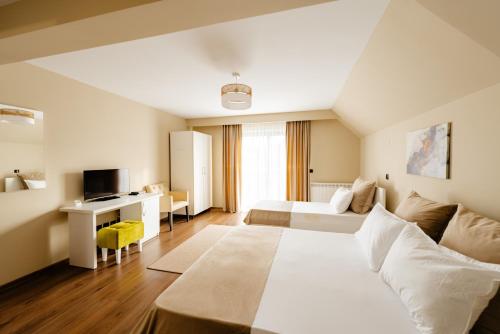 Boasting pool views, Pensiunea Perla Transilvaniei features accommodation with a garden, a bar and a shared lounge, around 41 km from Banffy Palace. Featuring free private parking, the 3-star guest house is 19 km from Turda Salt Mine. Guests can use the spa facilities and the steam room, or enjoy mountain views.
