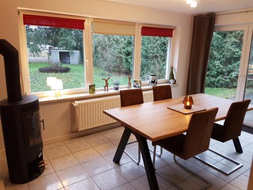 The holiday home has 2 bedrooms, 1 bathroom, bed linen, towels, a flat-screen TV with satellite channels, a dining area, a fully equipped kitchen, and a terrace with garden views. Guests can take in the ambience of the surroundings from an outdoor dining area or keep themselves warm by the fireplace on colder days. For added privacy, the accommodation features a private entrance.