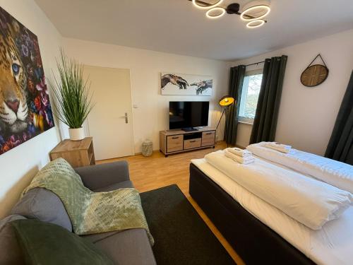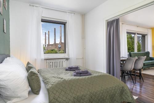 Immo-Vision - VW näher geht nicht, Parkplatz, Küche, Wlan has city views, free WiFi and free private parking, set in Wolfsburg, 400 metres from Main station Wolfsburg. This recently renovated apartment is located 500 metres from Phaeno Science Center and 700 metres from Autostadt Wolfsburg. The apartment has private entrance.