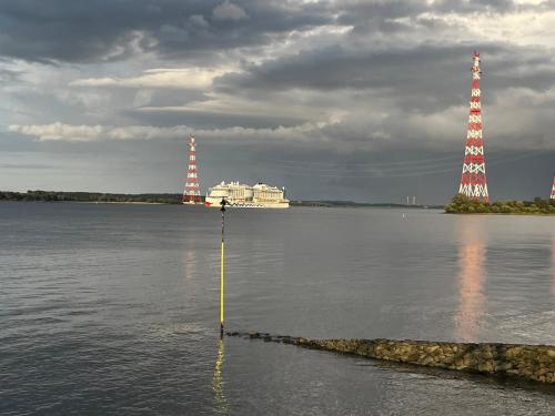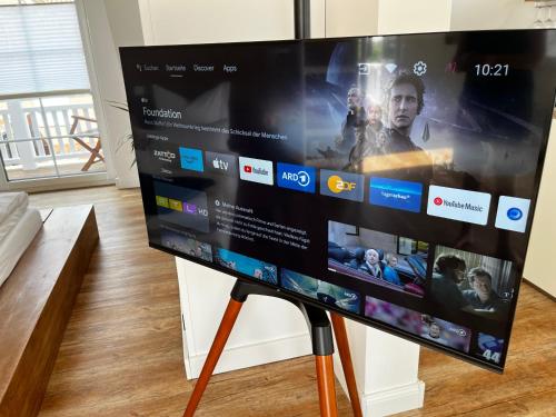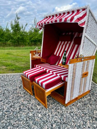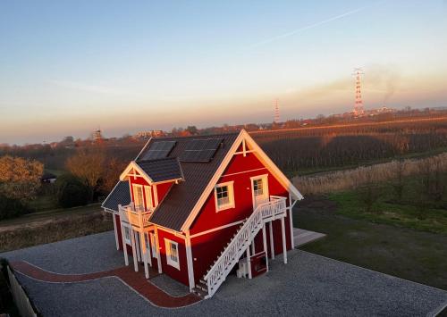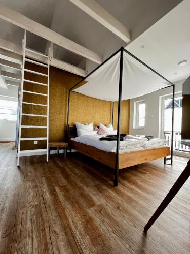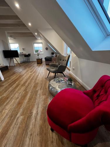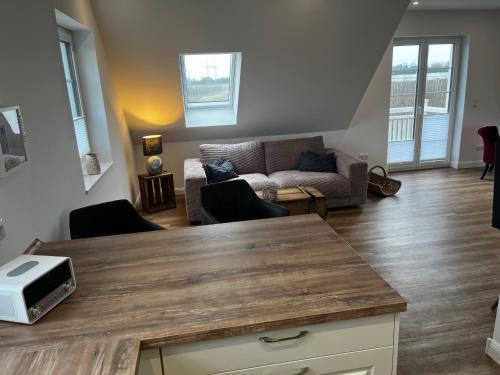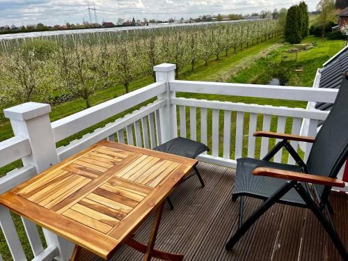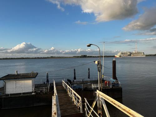 Muggelhuus das Loft mit Elbdeichblick im Alten Land und mit Wallbox is situated in Twielenfleth and offers a garden and a terrace. This property offers access to a balcony, free private parking and free WiFi. Outdoor seating is also available at the apartment.