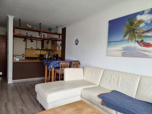 The apartment is composed of 1 bedroom, a fully equipped kitchen, and 1 bathroom. A flat-screen TV is featured.