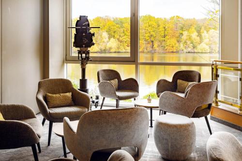 This modern, 4-star hotel is located directly on the shore of Lake Griebnitzsee in Potsdam's Babelsberg district. It offers quiet and spacious rooms with free WiFi as well as excellent public transport connections into Potsdam and Berlin.