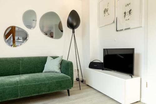 The units come with parquet floors and feature a fully equipped kitchen with an oven, a dining area, a flat-screen TV with streaming services, and a private bathroom with shower and bathrobes. A fridge, a stovetop and kitchenware are also available, as well as a coffee machine and a kettle. At the apartment complex, each unit includes bed linen and towels.