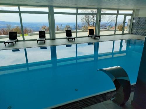 Featuring air-conditioned accommodation with a pool with a view, Traumblick Bayerischer Wald, Pool & Sauna, Getränke, Klimaanlage is located in Freyung. Boasting a lift, this property also provides guests with a picnic area. The accommodation provides a sauna, indoor pool, family-friendly restaurant and free WiFi.