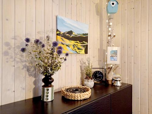 The holiday home with a terrace and garden views has 2 bedrooms, a living room, a flat-screen TV, an equipped kitchen with a dishwasher and an oven, and 2 bathrooms with a walk-in shower. Towels and bed linen are available in the holiday home. This holiday home is allergy-free and non-smoking.