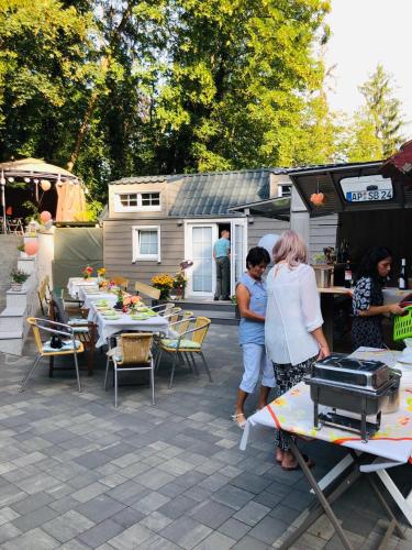 Featuring air-conditioned accommodation with a patio, Tinyhaus Wolkenlos Familie Hamdorf is set in Bad Sulza. This property offers access to a terrace, table tennis, free private parking and free WiFi. The property offers bike hire and features a garden and outdoor fireplace.