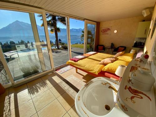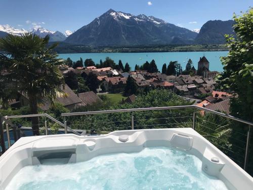 On a southern slope above the Oberhofen Castle, the Otium Erholungs-Oasen offers spacious apartments with a beautiful view of the castle, Lake Thun and the mountains. The apartments include high-quality natural beds, a fully equipped kitchen and a living area with free WiFi.