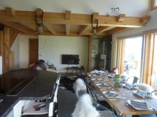 The holiday home features 3 bedrooms, 2 bathrooms, bed linen, towels, a flat-screen TV with satellite channels, a dining area, a fully equipped kitchen, and a terrace with mountain views. The comfortable, air-conditioned accommodation also comes with soundproofing and a fireplace. The property has an outdoor dining area.
