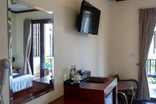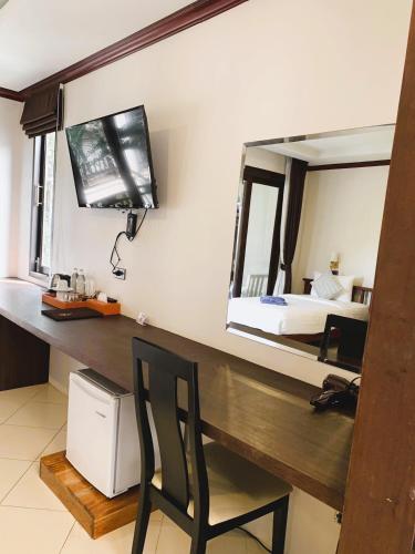 Huoneissa on tv, minibaari sekä puiset kalusteet ja koristeita. Omassa kylpyhuoneessa on suihku.