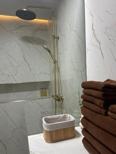 The apartment provides guests with a terrace, garden views, a seating area, a flat-screen TV, a fully equipped kitchen with an oven and a microwave, and a private bathroom with bidet. A fridge, a stovetop and kitchenware are also provided, as well as a kettle. At the apartment complex, all units have bed linen and towels.